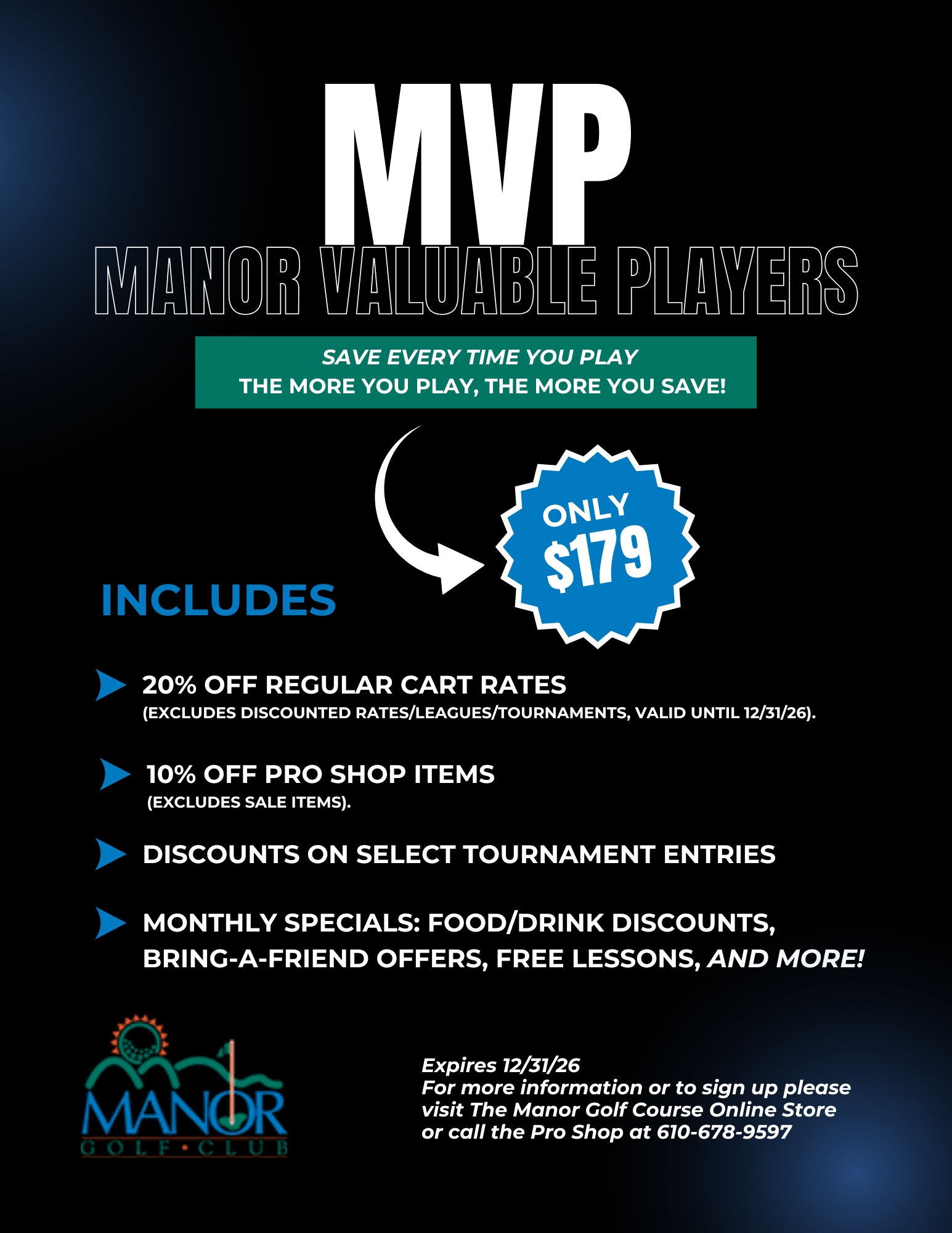 MVP’s receive great perks, like 20% off regular riding rates, 10% off pro shop items, modified tournament entry fees, and more!